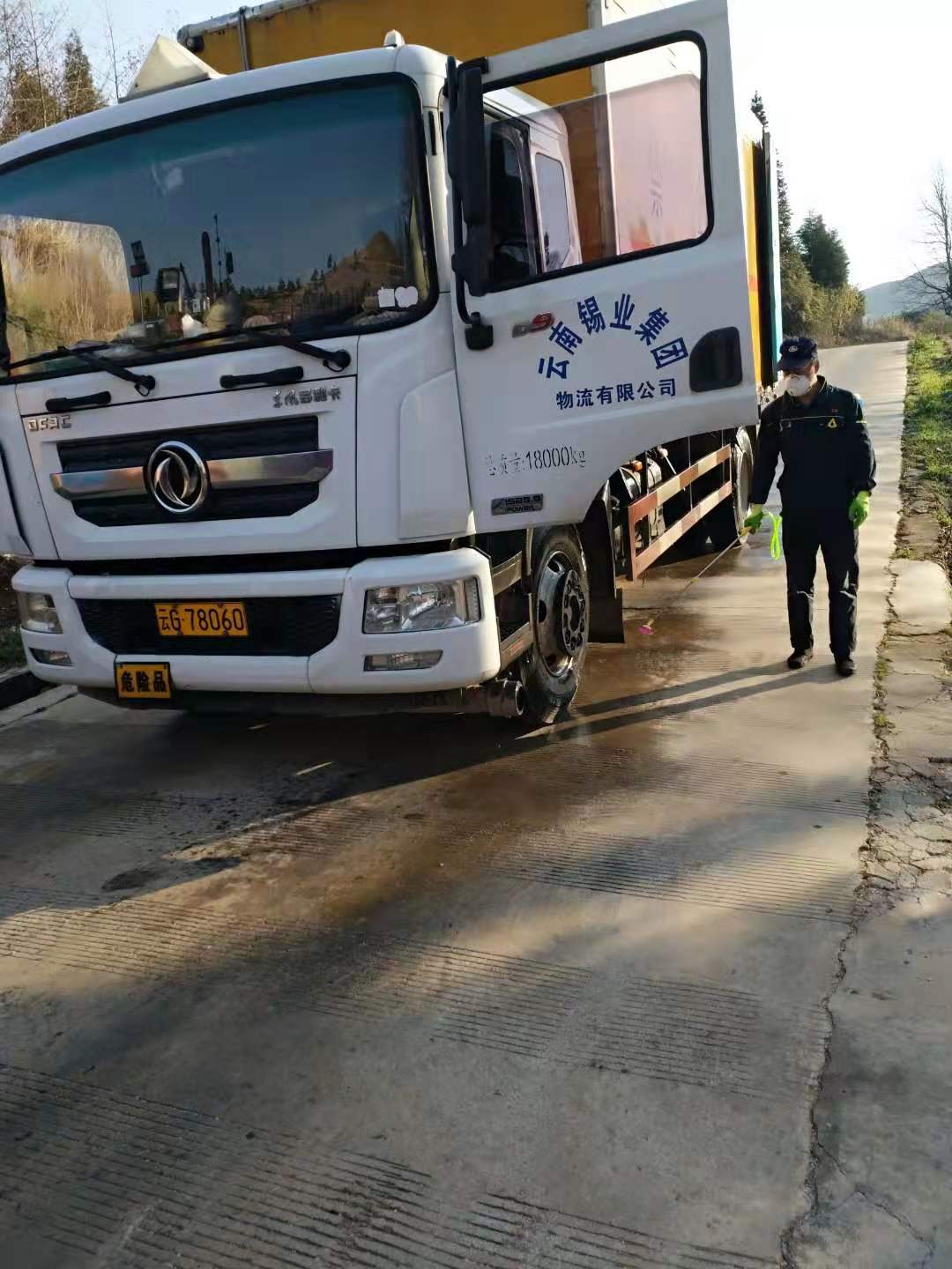 五八一公司對通勤車輛和危貨車輛進(jìn)行消毒。