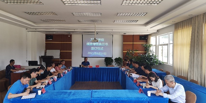 2021年6月16日,公司召開2021年度公司績效考核責任書簽訂會,公司領(lǐng)導(dǎo)、副總工程師、四個分公司經(jīng)理、總部各部門負責人、績效考核小組成員參加簽訂會,旭潤公司總經(jīng)理列席簽訂會。公司副總經(jīng)理潘彥吉主持簽訂會。