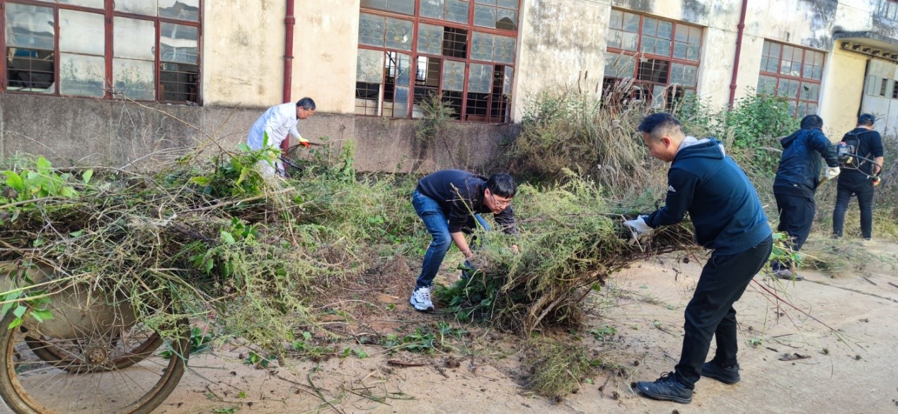 支部就清除整治的范圍、人員分工、工具配備、安全防護(hù)、衣著穿戴各方面進(jìn)行詳細(xì)安排和要求后,黨員們默契配合,三五成隊,在割草機的轟鳴聲中揮汗如雨,利用4個小時的時間圓滿完成了清除整治。
