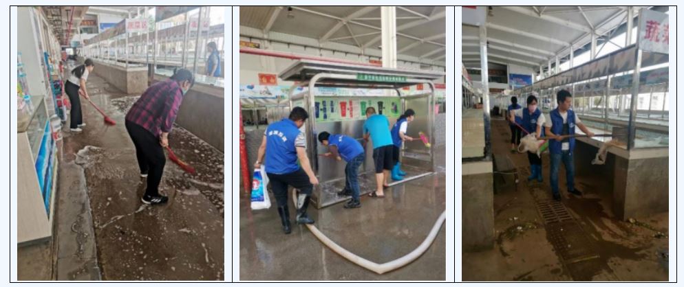 此次行動(dòng)重點(diǎn)對(duì)市場(chǎng)地面、攤位臺(tái)面、垃圾桶、下水道等區(qū)域進(jìn)行全方位、無死角清掃;清除各類散放垃圾、堆放雜物。行動(dòng)中,大家發(fā)揚(yáng)不怕臟、不怕累的精神,緊密結(jié)合、分工協(xié)作,分別手拿掃帚、沖水槍對(duì)市場(chǎng)地面、攤位臺(tái)面、墻面、垃圾桶進(jìn)行了無死角的清除,對(duì)殘留的頑固污漬、“牛皮癬”等用清潔劑刷子進(jìn)行擦拭清洗。市場(chǎng)內(nèi)的經(jīng)營攤主也和我們物業(yè)人員一起積極動(dòng)手清理打掃。