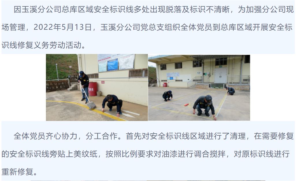 玉溪分公司組織黨員開展修復安全標識線義務活動