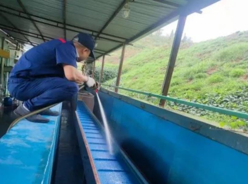 為保證設(shè)備正常運(yùn)行,端午節(jié)期間,金沙人化工炸藥生產(chǎn)車間部分黨員、職工們主動(dòng)放棄假期,利用停產(chǎn)時(shí)間,對(duì)生產(chǎn)區(qū)各類設(shè)備進(jìn)行維護(hù)保養(yǎng)、藥卷冷卻鏈板及水池進(jìn)行徹底清洗。盡管加班期間突遇雷雨天氣,每個(gè)人被房檐濺落的雨水打濕了衣服,但他們?nèi)匀缓翢o(wú)怨言,仔細(xì)清理,不折不扣地完成了清洗保養(yǎng)工作。