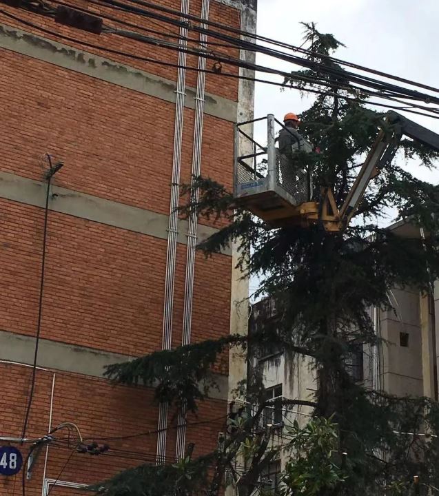 在吱吱吱的電鋸聲中,和供電線路試比高的樹枝一一順勢(shì)倒下,還給了它們一個(gè)刮風(fēng)下雨都不怕再被樹枝打擾的安全工作環(huán)境;道路兩旁的行道樹經(jīng)過(guò)綠化工作人員的精心修剪,視野開闊了,路過(guò)樹下的行人和停放的車輛避免了受到枯枝意外掉落的傷害;上周四下午的暴風(fēng)雨把脆枝吹斷后砸向92棟通道,連續(xù)幾天住戶們都來(lái)物業(yè)辦公室并親自到工作現(xiàn)場(chǎng)反映該情況,工作人員到現(xiàn)場(chǎng)實(shí)地查看后,也在此次的工作中一并進(jìn)行了處理?!斑@下室內(nèi)光線敞亮了,出門放心啦!謝謝你們!”