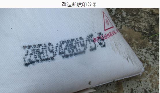 玉溪分公司粘性炸藥成品包裝袋的生產(chǎn)批號自投產(chǎn)以來一直使用大字符噴碼機進行噴印,因大字符噴碼機使用的墨水是水性墨水,噴印后的墨水會沿著包裝袋條紋擴散,最終導(dǎo)致噴印批號、生產(chǎn)日期數(shù)字模糊。