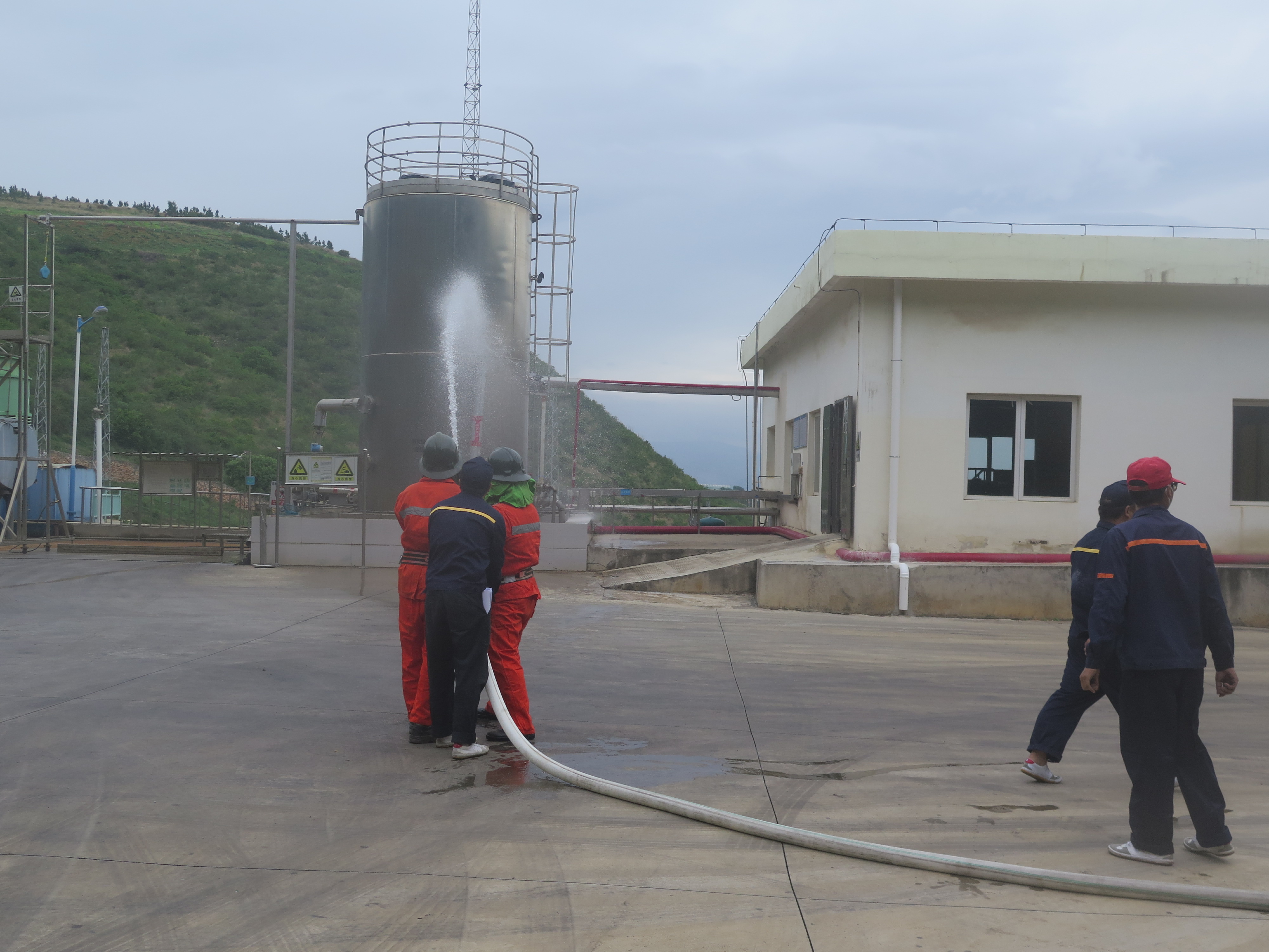 此次演練以開遠(yuǎn)分公司膨化硝銨炸藥生產(chǎn)線水油相制備工序硝酸銨溶液儲(chǔ)罐內(nèi)硝酸銨溶液熱分解起火為背景。演練前,開遠(yuǎn)分公司組織全體員工學(xué)習(xí)演練方案,并要求全體員工提高安全意識(shí),防患于未然,確保演練安全、有序。演練過(guò)程中各演練小組各司其職、井然有序,響應(yīng)迅速,配合緊密。