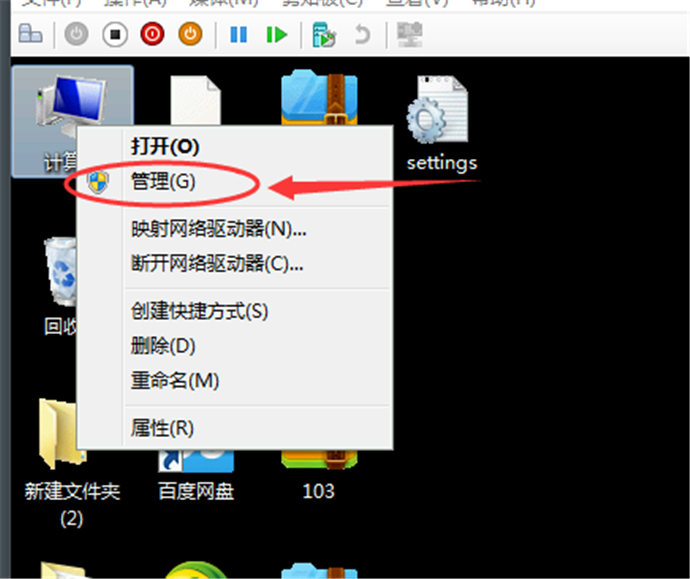 1、鼠標(biāo)右鍵點(diǎn)擊我的電腦,在菜單欄中點(diǎn)擊管理;