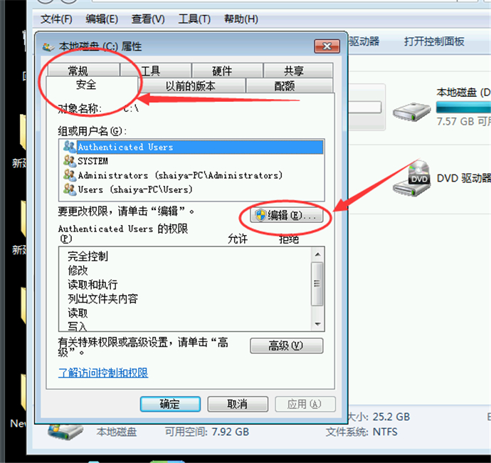 第二招:編輯磁盤權(quán)限