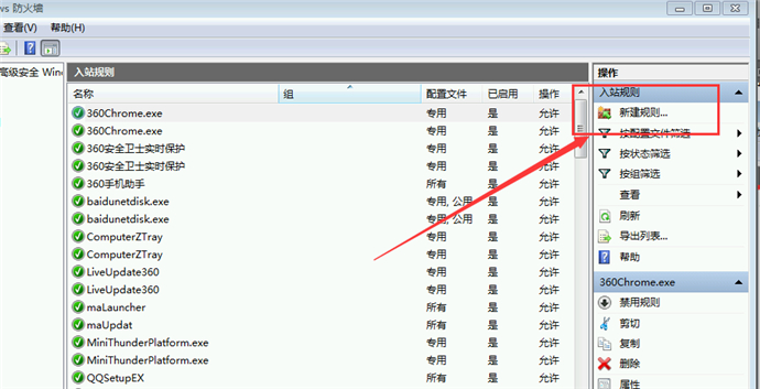 5、選擇“入站規(guī)則”;