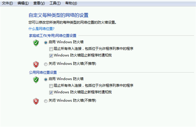 13、將“啟用windows防火墻”、“windows防火墻阻止新程序時(shí)通知我”兩個(gè)選擇框選中后,單擊“確定”后關(guān)閉;